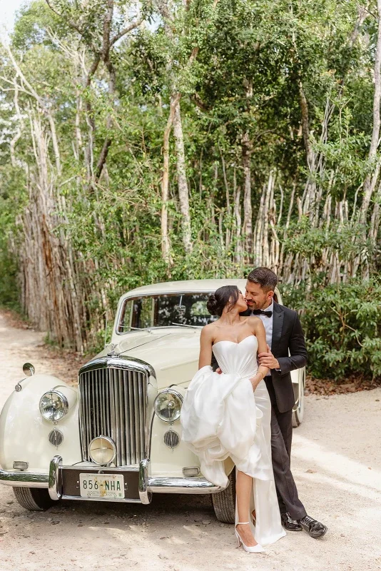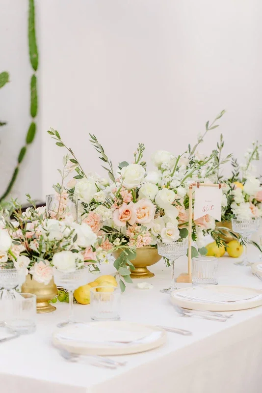 Stephanie dreamed of an Italian-inspired wedding, and the moment she discovered our modern Mediterranean home tucked away in the middle of the jungle, she instantly saw her vision come to life. The bright lemons, playful details, and breezy coastal charm felt like the perfect blend of Italy and Tulum — a space where her inspiration could unfold naturally and beautifully. Her stunning Galia Lahav gown paired perfectly with the scene, while her bridesmaids brought a soft, romantic touch with their coated candy–colored dresses.